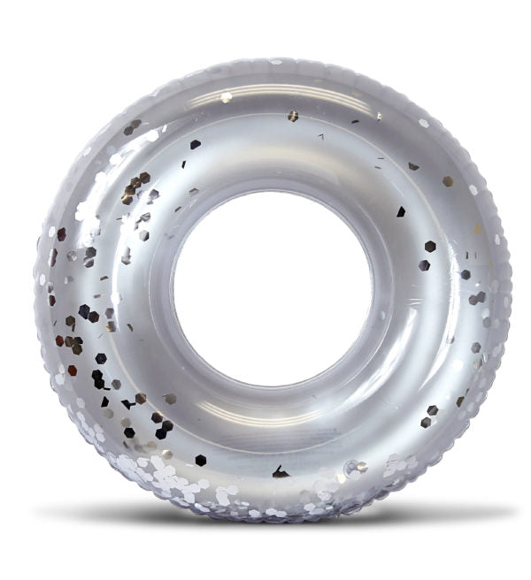 - RELAXING & POOL LOUNGING HAS NEVER LOOKED SO COOL! Create extra pool fun at your next pool party with this Large Elegant Silver Sparkling Confetti Jumbo Pool Tube Float! Boasts an impressive 37″ and features large gold confetti inside for a touch of magic.