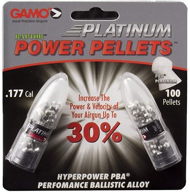.177 cal. Pellet that uses enhanced non-lead alloy to generate velocities up to 30% faster than conventional lead pellets. These Platinum pellets offer enhanced accuracy and maximum penetration for hunting applications. Pba is 100% lead free and environmentally friendly. Features: - performance ballistic alloy enhances penetration, velocity, and accuracy by 30% - PBA is guaranteed lead-free and environmentally friendly specifications: - caliber .177 - pellet weight: 4.7 grains - quantity: per 100